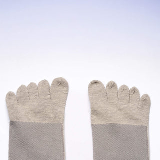 The ergonomic five-toe design allows for complete freedom of movement, promoting natural toe splay and enhancing your foot's intrinsic stability and sensory feedback. Crafted with a plush loop-back base for superior comfort and moisture-wicking, and a breathable waffle knit top, they're ideal for running, gym-use, and all your outdoor adventures.