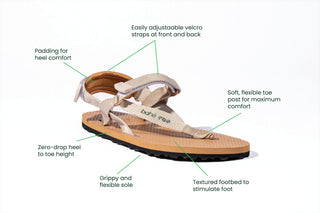 Grounded barefoot-style sandal. Created to let your feet truly breathe.