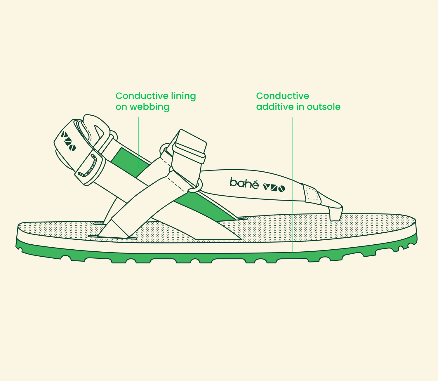Integrated conductive technology, for grounding on the go.