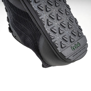 Close up Bahé Revive barefoot style grounding shoe (Eclipse - black) in nature
